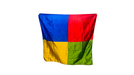 The magician holds four different color silk handkerchiefs bunched together near one corner. One hanky is pulled out, folded, and placed in the pocket. The remaining hankies are crumpled into a ball. Moments later, the magician stretches the "hankies", which magically blends into a single large four-colored foulard.