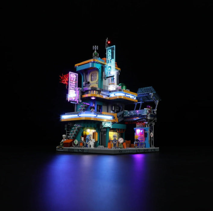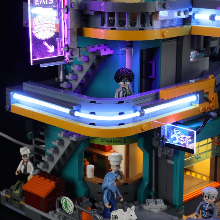 Immerse yourself in a colorful microcosm of a cyberpunk world with this 2507 piece set. Meet the blackened fried chicken store owner, the mysterious hacker, and the unlucky cyber madman, among others. Climb to the top of technology with the mechanic and experience a society like no other. Let your imagination run wild!