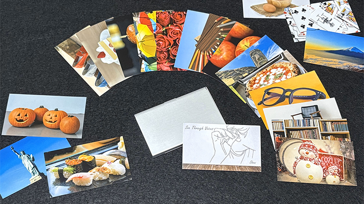 Have the spectator shuffle about 20 business card-sized photos.Then, let them freely choose one they like.