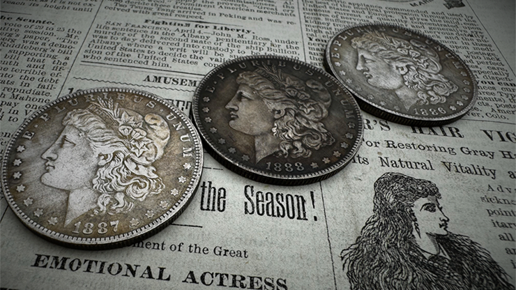 In effect, three large silver dollars are shown to have three different dates, examined, and put into three unmarked and regular envelopes by a spectator, who also shuffles them, all while your back is turned.